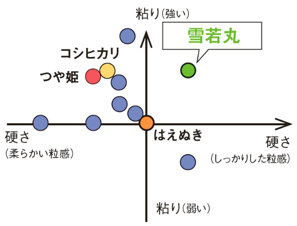 「雪若丸」は、しっかりとした粒感と適度な粘りが両立した、これまでにない新しい食感のお米です。