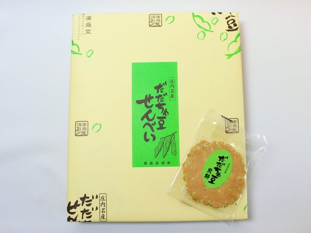山形県庄内地方産の「だだちゃ豆」を使用した洋風焼き菓子せんべいです。だだちゃ豆そのままの甘さや豆の香り、バターの風味が絶妙な洋風のおせんべいです。食べ始めるとクセになり、お子様からご年配の方までお召し上がり頂けます。
